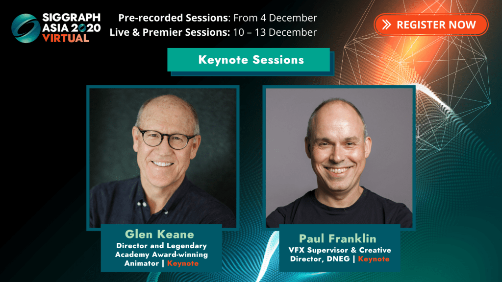 Headlining the online SIGGRAPH Asia this year is a keynote by Glen Keane, the legendary creator of The Little Mermaid, Aladdin, The Beast, Tarzan, and Rapunzel; and then also by two-time Academy Award winner and leading visual effects designer Paul Franklin of DNEG.