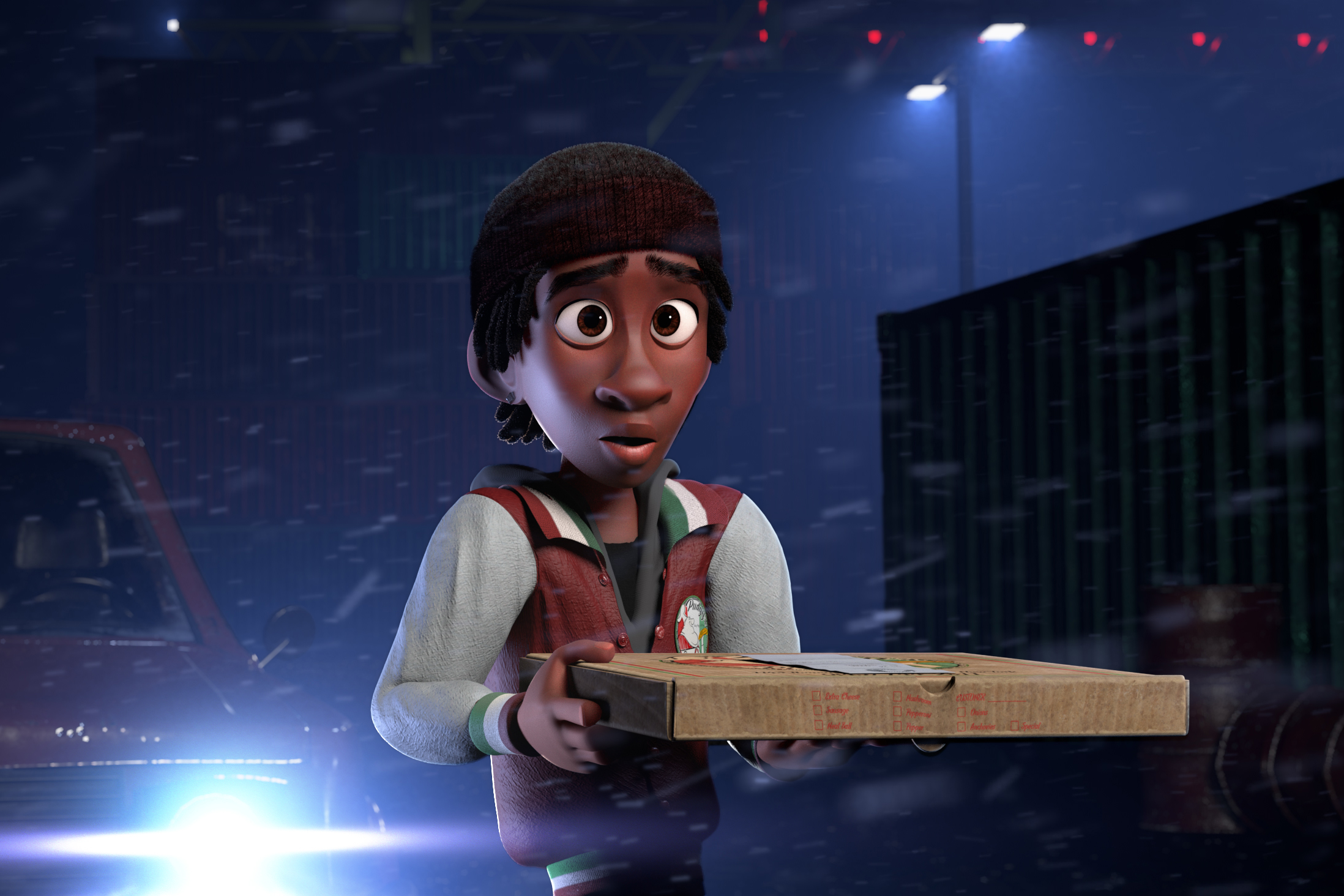 Craig, a pizza delivery boy, recalls the night he was making a delivery to a cold-blooded gang boss and his goons. Unknowingly, Craig delivers not pizza, but the legendary Box Assassin. The assassin shows up and wreaks havoc among the gangsters. Craig attempts to escape but is taken hostage by the gang boss. At the mercy of a cold-blooded gangster, Craig fears this might be the end.
