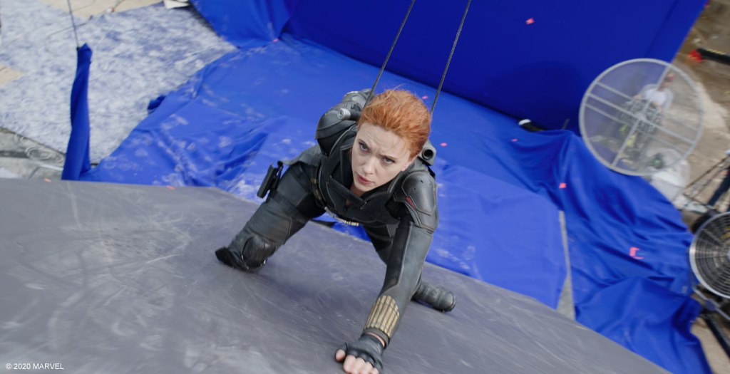 In one of the final sequences in Marvel Studios’ Black Widow, the title character Natasha Romanoff [Scarlett Johansson] confronts her demons. Her ‘family’ discovers the flying fortress from her past, soaring high among the clouds. The Black Widow stages this massive airborne struggle with heroes and villains dodging flaming wreckage as they approach terminal velocity, all on the way down to the ground. It’s one of the most visually complex and technically demanding scenes ever seen, made possible by Marvel Studios’ longtime collaborator, Digital Domain.