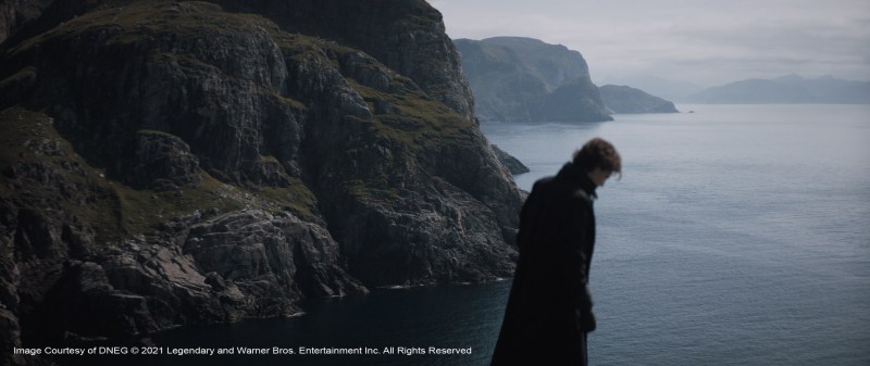 DNEG came up with a way to interactively track the character on set. “Timothée Chalamet had markers on him, and the location was rigged up as a MoCap set, with readers up on all the rigs, so we knew where he was going to be as he played through the shot,” explains Lambert. “The holographic model for the bush had been signed off by Denis, so we sliced the bush into hundreds of thin sheets of light. We’d project just one of those slices onto Chalamet, depending on where he was. The system was set so as he moved forward, the slice would change to the next slice of the bush. As he moved around, it looked like he was penetrating into the bushes. And because we had this tactile interaction from the actor to the lighting, this became a real live part of the scene. Timothée could see the light of the bush change on his skin and this became a tactile in-camera effect.” The VFX studio Wylie&Co then comped in the rest of the bush in front and behind the character to further hide him from the hunter-seeker and fill out the shot.