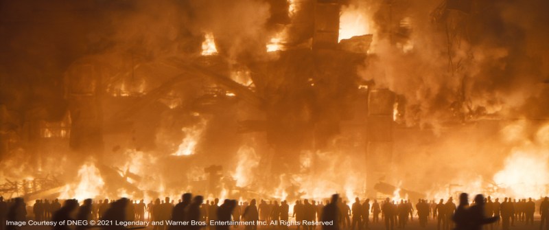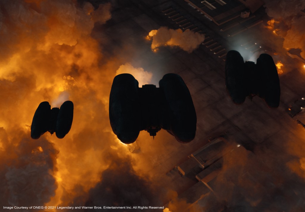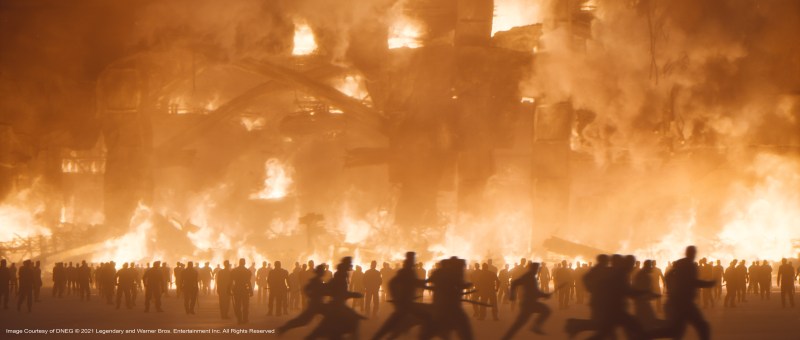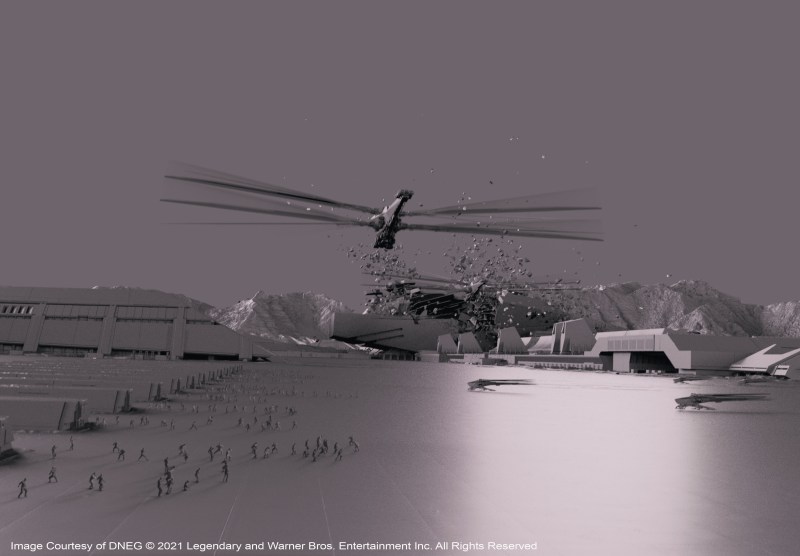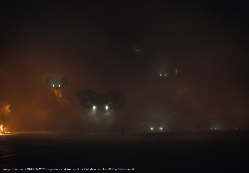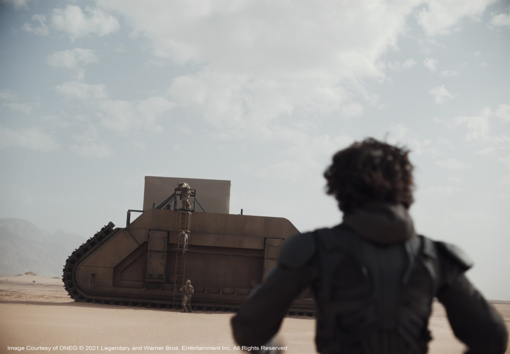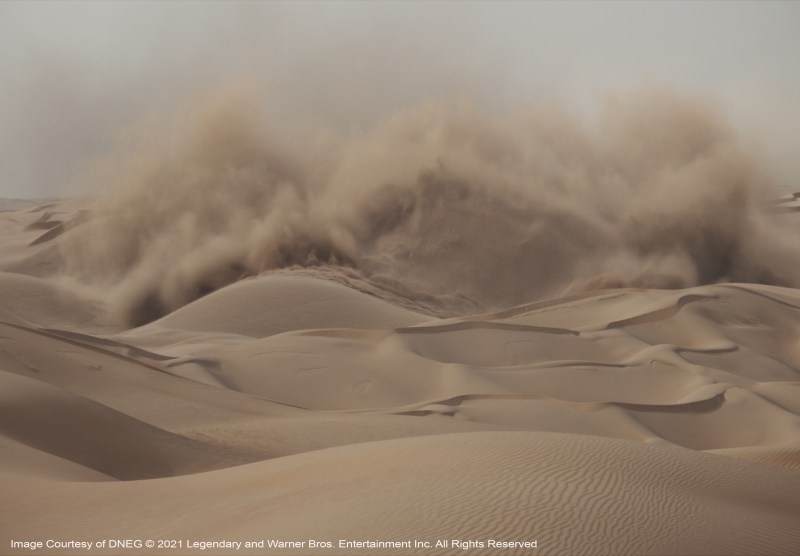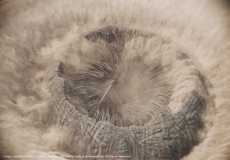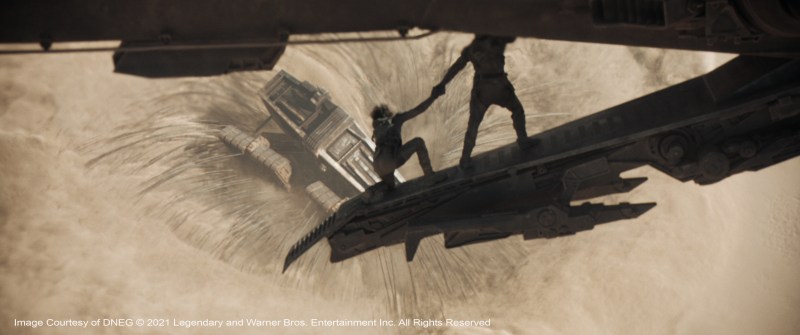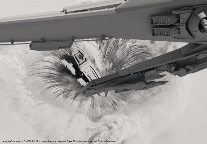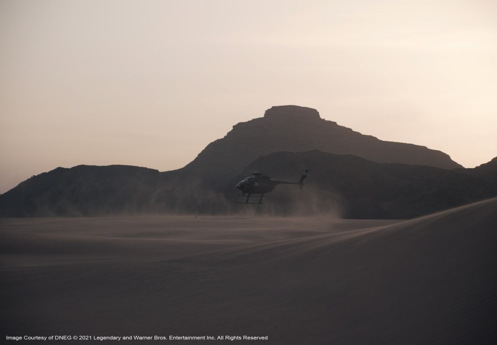 “We’d planned a moCap shoot for a particular shot to do with a dream sequence where Timothée Chalamet’s character is in the future and he’s fighting everybody, there were I guess, about 15 people there,” Lambert describes. Then on the day the emergency was declared, Paul Lambert went back to his place in Studio City, Denis left for Montreal. The DNEG studio and Wylie&Co. also completely dispersed. They eventually did get back together again and the scene was completed in the Fall of 2020, with the 13 or so stunt people, “all wearing masks, jumping about doing crazy athletic things,” says Lambert. “They needed rest-breaks every five minutes but it was the most bizarre visuals I’d ever seen on a MoCap stage. Denis couldn’t be there, so over the top of it all, we had Denis’s face on an iPad, directing the whole thing from Montreal. We made it work, which was most important. We made it work.”