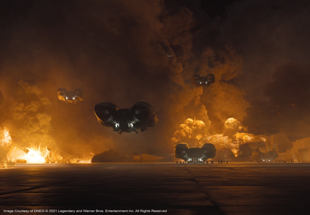 Thankfully, most of the live action work had been completed for DUNE, before the world closed up into pandemic-mode. Paul Lambert found himself in the studios in Burbank, which is a legendary studio lot in California. The inhouse team from Wylie&Co were also there with the DNEG team. But it only took DNEG about a week to get back up and running after the lockdown started. “It actually was really impressive. Back up within a week,” exclaimed Lambert. “What happened was that myself and the VFX team would be in constant contact via Slack, with a dedicated audio and video channel. And with that, we’d set up the reviews and dailies every day, with either DNEG or Wiley&Co., and RodeoFX brought their work in as well, booming in from Vancouver, Los Angeles, Mumbai and Montreal.”